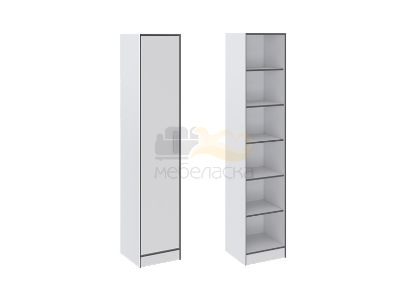 Шкаф декорирован серой кромкой. Ручки: пластик белый.