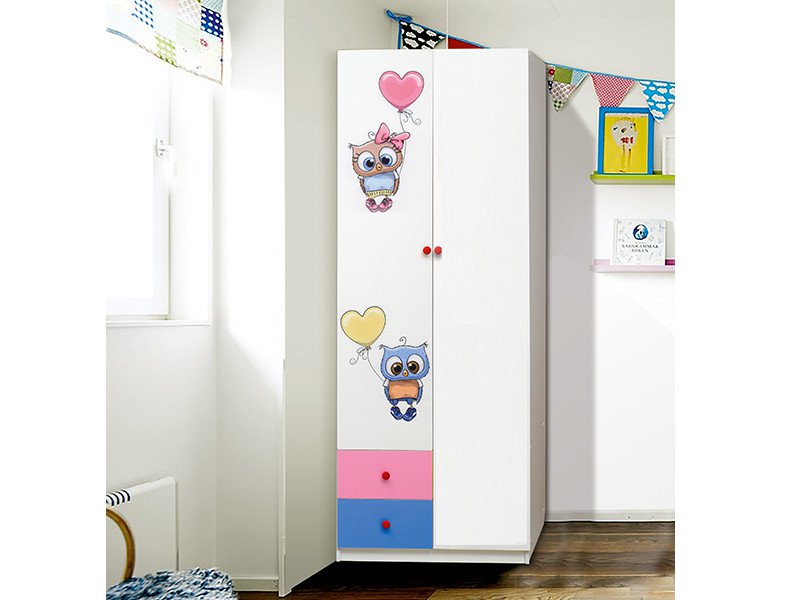 Шкаф двухдверный с ящиками и фотопечатью Совята 2.2