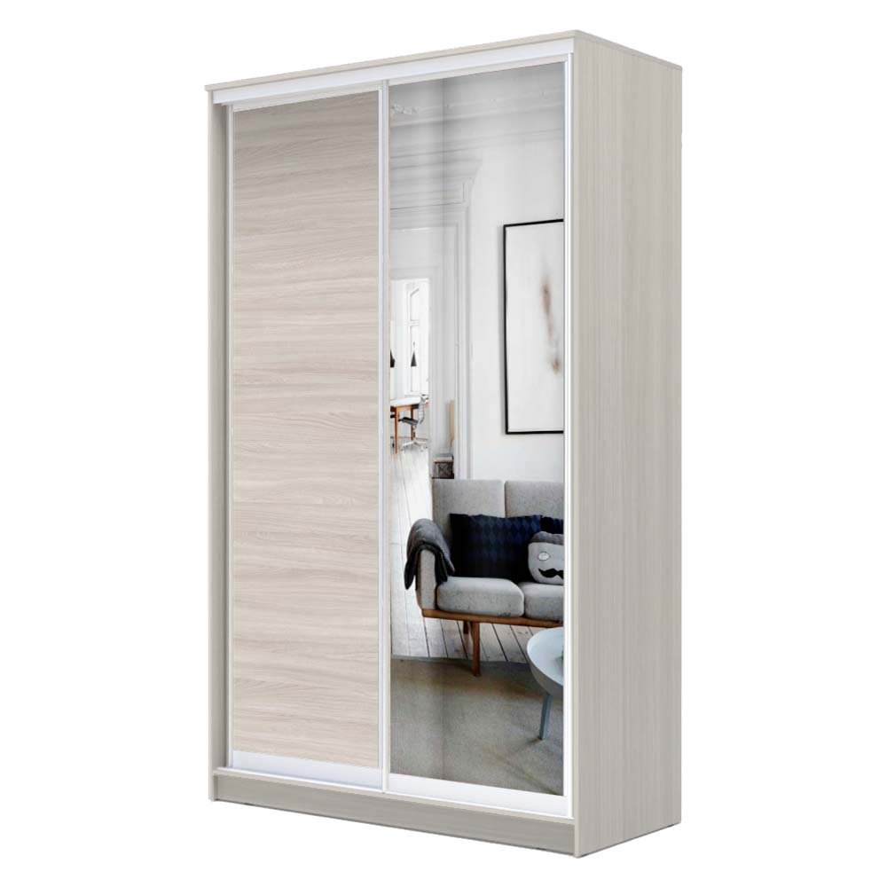 - Шкаф-купе Хит 2200 ЛДСП с зеркалом Ясень шимо светлый