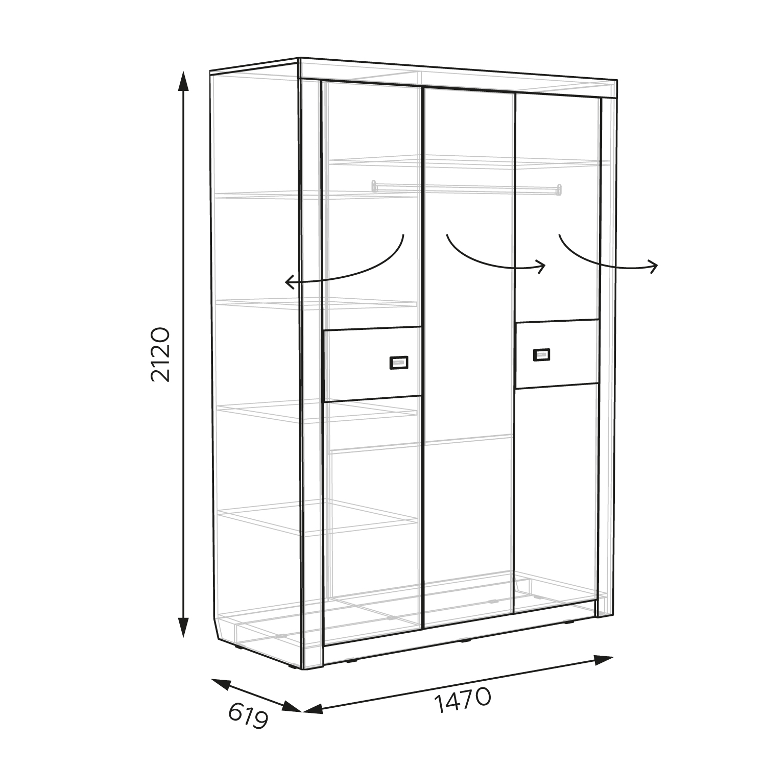 Размеры Ш*В*Г 1470*2120*619 мм