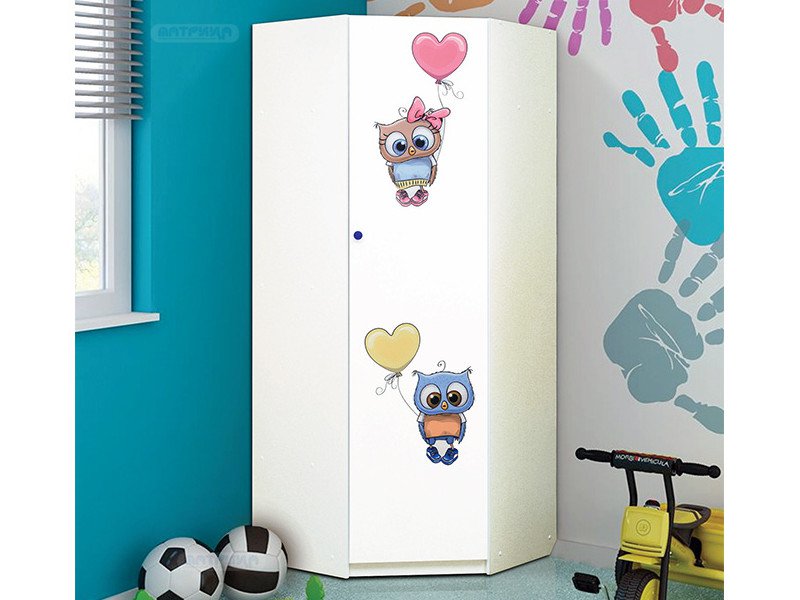 Шкаф угловой с фотопечатью Совята 2.2