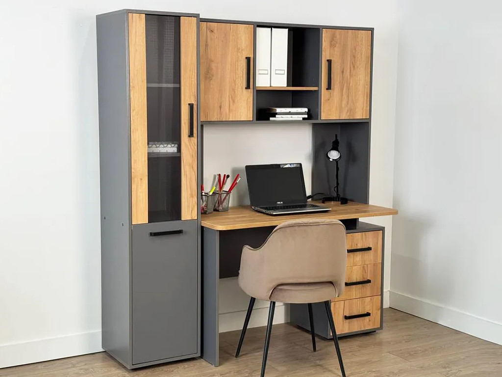 - Стеллаж Лайт-2 графит/дуб крафт золотой