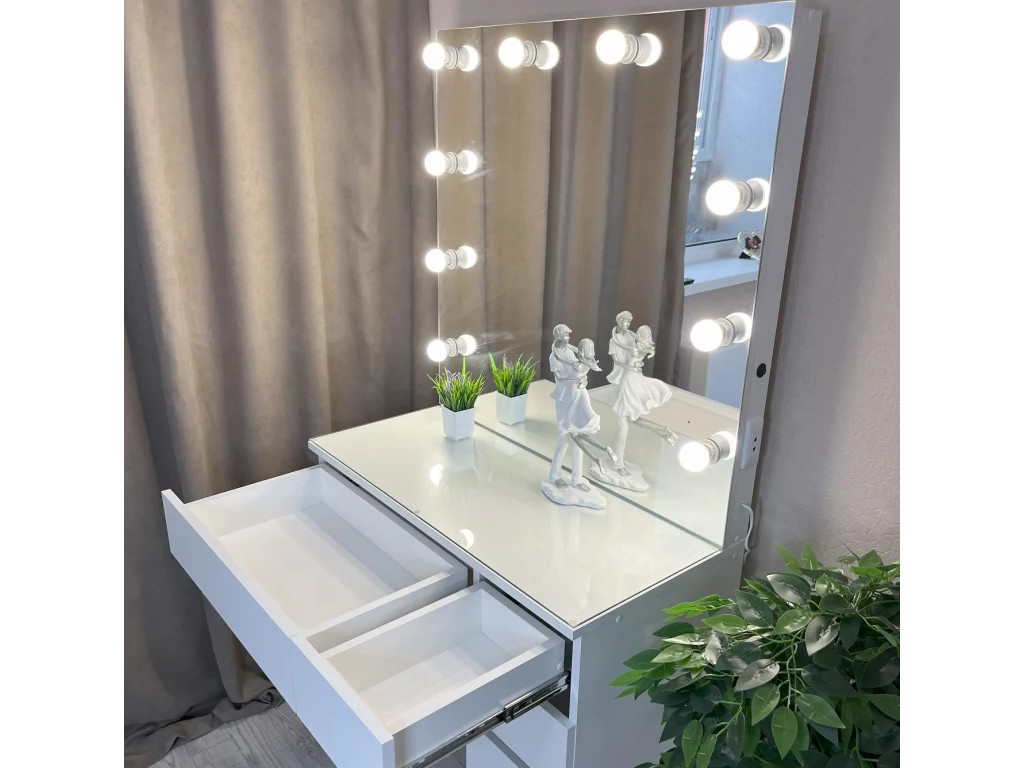 - Туалетный стол с 5 вместительными полновыкатными ящиками без ручек.