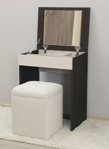 Столешница имеет зеркало с внутренней стороны.